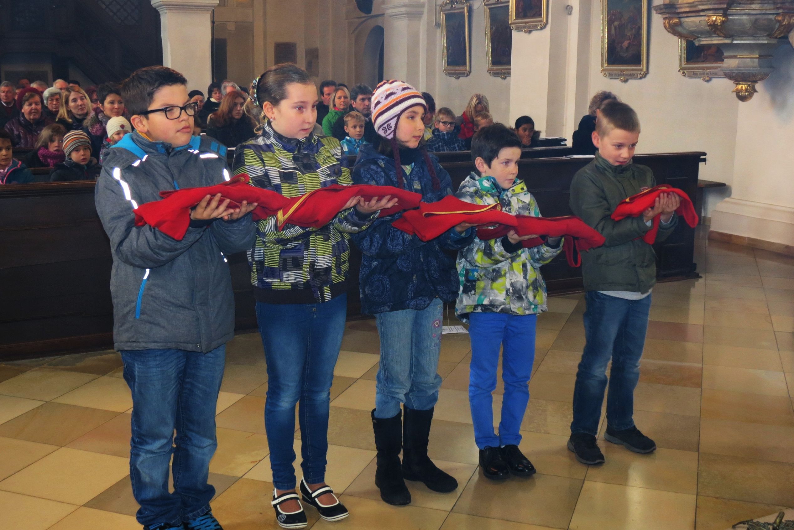 Nach dem Segen der Kommuniongewänder und Minis durften sie auch gleich erstmals ihren Dienst am Altar ausüben. Unterstützt wurden sie von dem älteren Ministranten und unserer Gemeindereferentin Frau Schmitz. Wir wünschen ihnen viel Freude an ihrem Dienst.